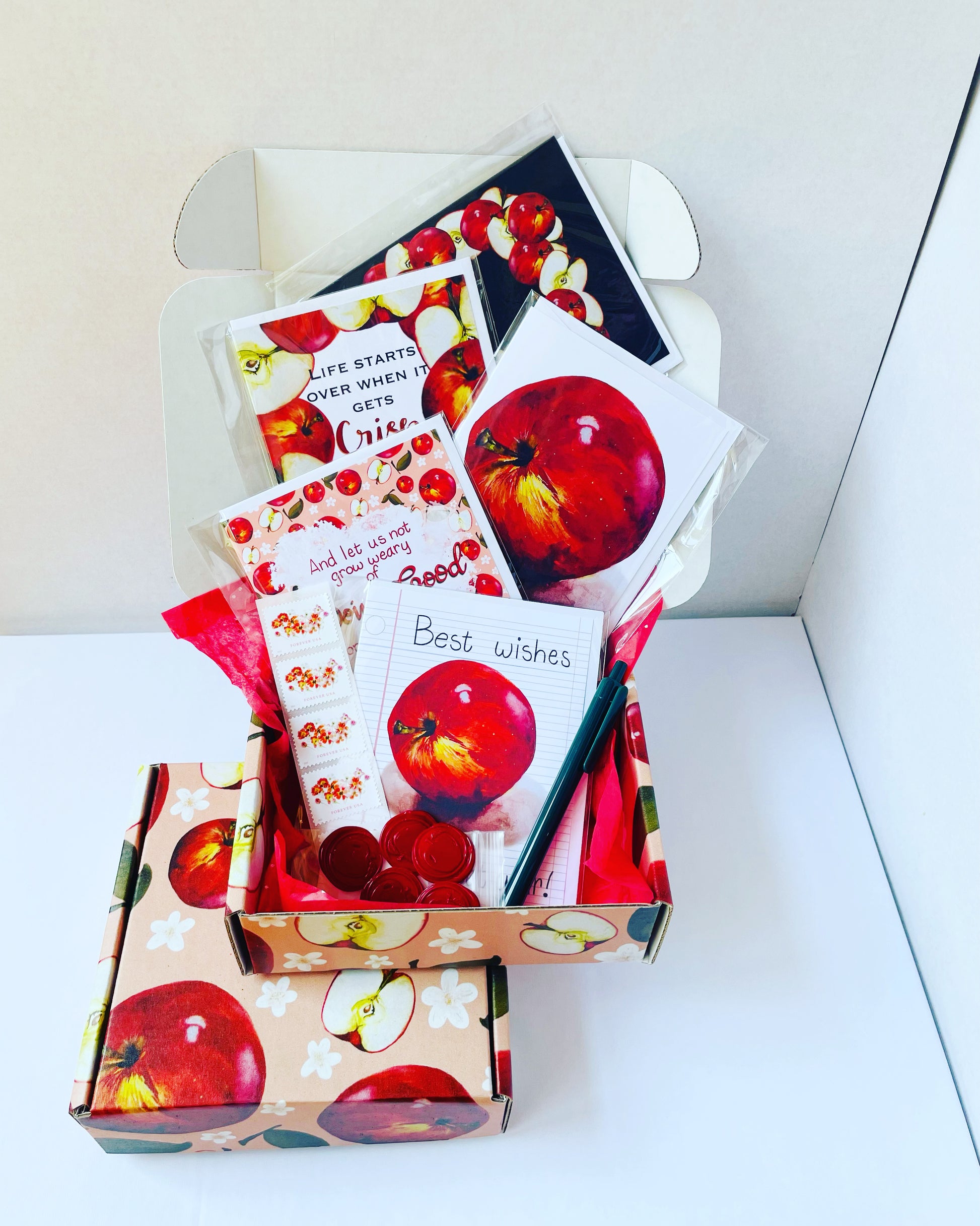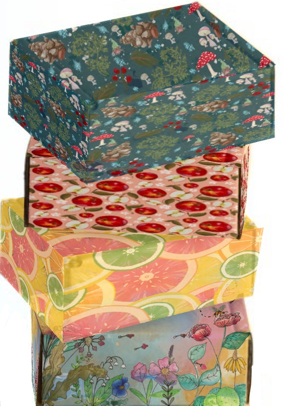 Get a new box of fresh Sonshine Paperie goods every quarter. Each box has a unique theme with original artwork inspired by my garden.