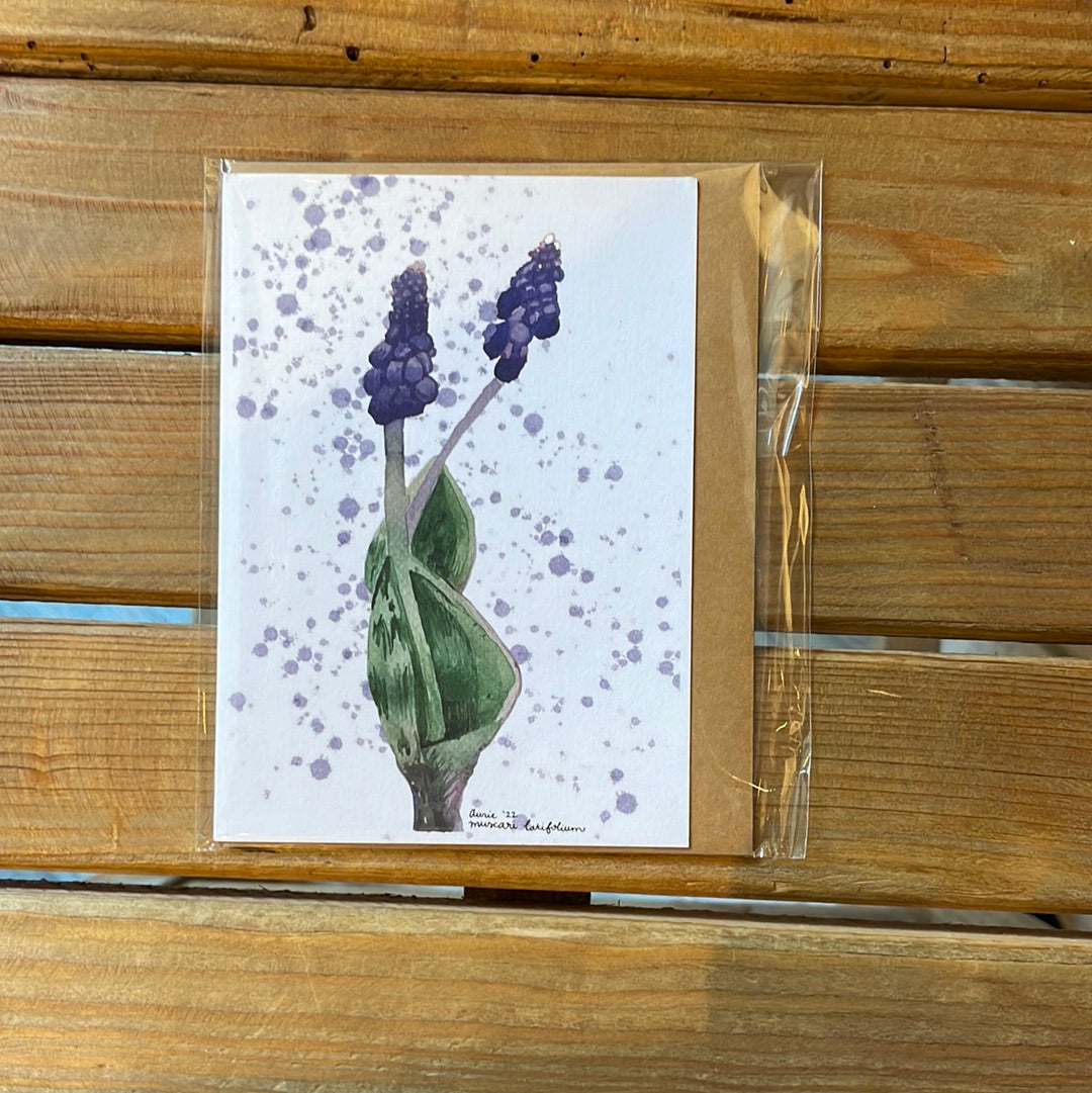 Let the beauty of spring bloom in every card with our Grape Hyacinth Blank Card. These watercolor designs are sure to bring joy to your loved ones. With a stunning design that continues inside, it's the perfect way to spread springtime cheer.