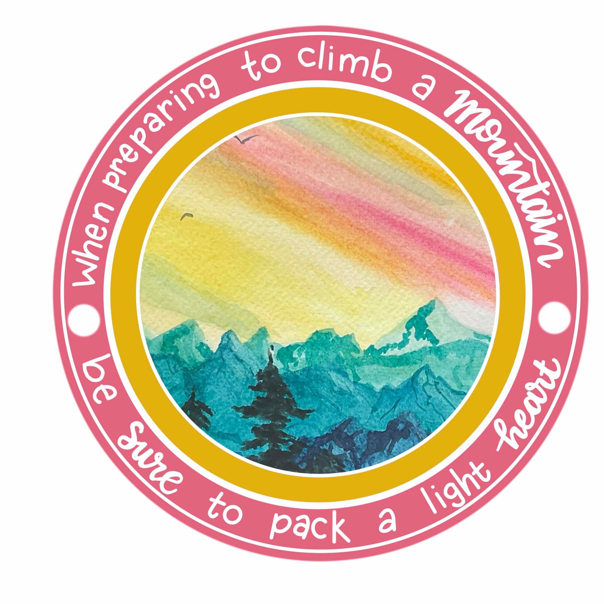In addition to its aesthetic charm, this sticker carries a profound message. The quote, "When preparing to climb mountains, be sure to pack a light heart," serves as a gentle reminder to approach challenges with a positive and resilient mindset. It encapsulates the essence of a successful journey—emphasizing the importance of optimism, adaptability, and embracing the unknown.