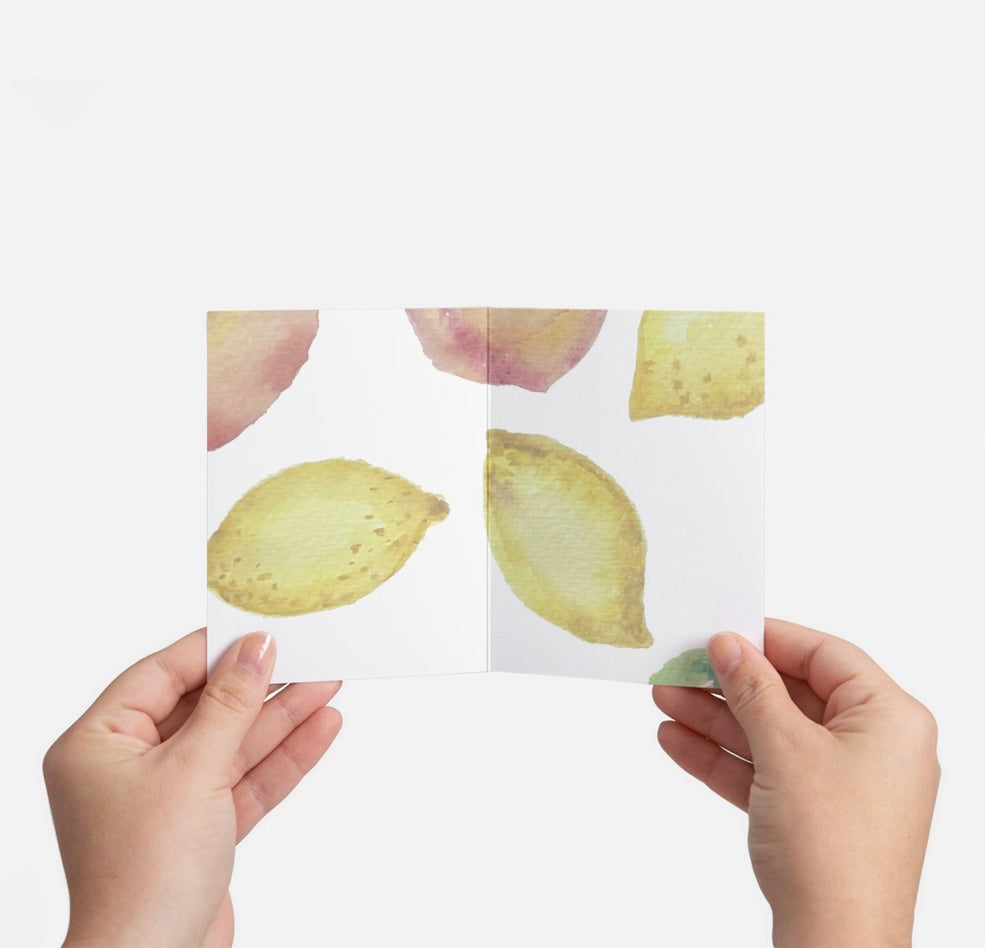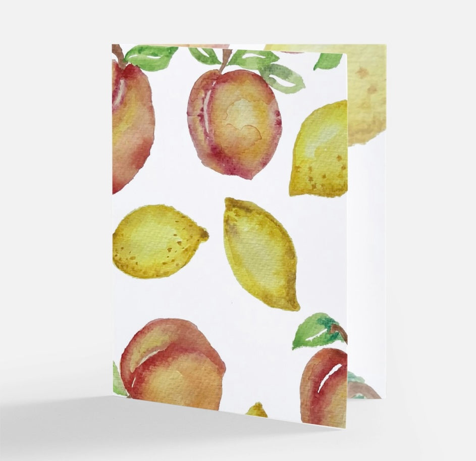 Elevate your gifting game with our Lemon and Peach Greeting Card - a new classic treasure that captures the spirit of summer and embraces the power of your words to create warm connection. Share the joy, share the beauty!