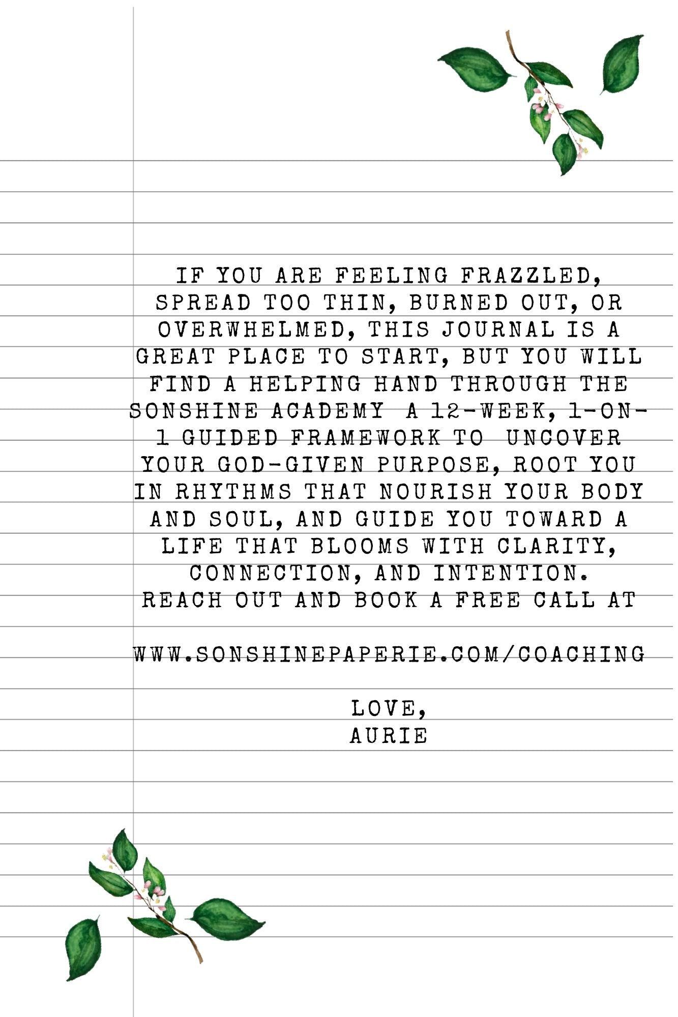 Whether you're new to journaling or longing for a fresh way to connect with God and yourself, this journal is designed to help you trade hurry for holy and walk with purpose through your day.