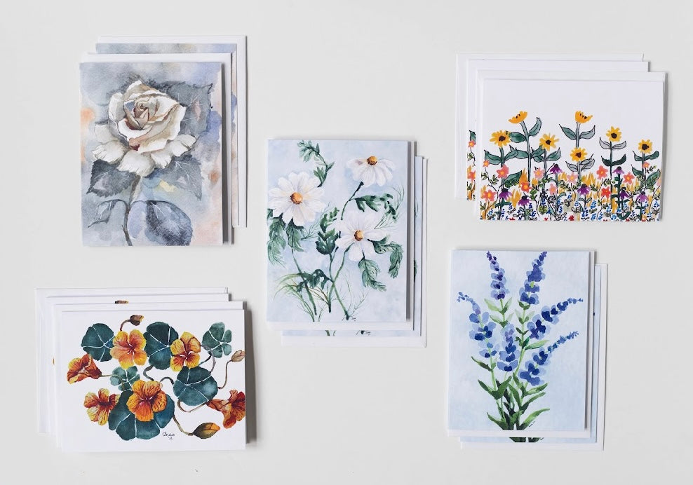 Meet the brand new Summer Blooms collection! These are already a best seller, everyone loves these! The designs are a wonderful blend of watercolor blooms that make the summer garden beautiful. The inside has the design gorgeously continued in order to prevent writer’s block. In a box, you get 2 of each 4x6 card made from premium grade paper for quality you can feel. Grab these today so you have a stunning card ready for any occasion this summer!